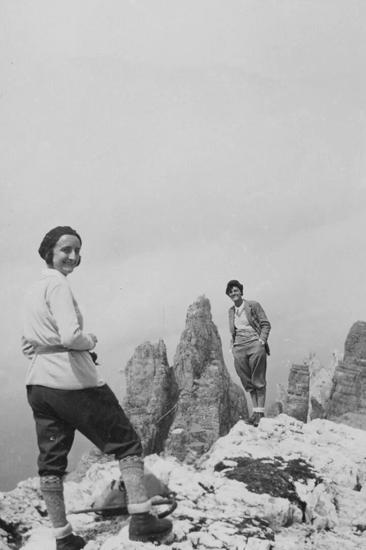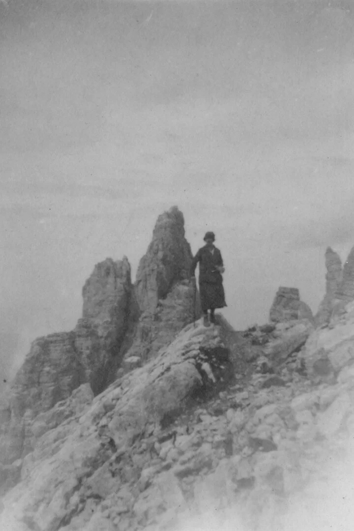 However, some upper-class or more progressive women organised themselves into a kind of ‘women’s sports movement’ and started to participate in Alpine climbing and white sports. And so already in 1898 in the Cortina cluster, the elegant English mountaineer Beatrice Thomasson, who had been a member of the Österreichischer Alpenverein since 1893, became particularly famous for conquering some of the Dolomite peaks, often accompanied by the mountain guide Arcangelo Siorpaes.